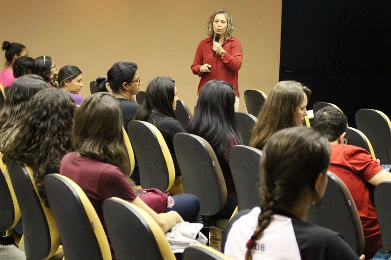 Em alusão ao Outubro Rosa — mês de prevenção e conscientização em relação ao câncer de mama —, acadêmicos de Fisioterapia, Enfermagem e Farmácia da Universidade Católica Dom Bosco (UCDB) participaram de uma palestra sobre a doença, que abordou também o câncer de colo de útero. Como parte da disciplina “Atividades Integradas IV”, os temas foram trazidos pela ginecologista convidada, Adriane Cristina Bovo, nesta quarta-feira (3).