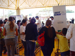 A Universidade Católica Dom Bosco (UCDB) participou, no último sábado, da ação social “Promovendo Caminhos mais Justos”. A Instituição, por meio dosprojetos de extensão (Biotério, Laboratório de Avaliação Física, Gibimania, vivências em ciências agrárias) e alguns cursos de graduação (Comunicação Social e Enfermagem) estiveram muito bem representados em estandes, pelos extensionistas, e no palco e outras atividades, pelos alunos de graduação.