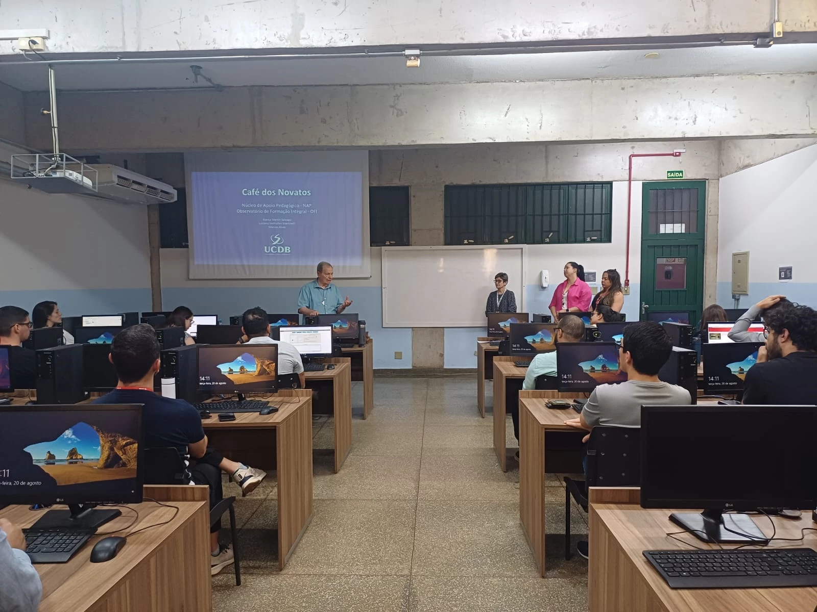 A Universidade Católica Dom Bosco (UCDB), por meio do Núcleo de Apoio Pedagógico (NAP) e pelo Observatório de Formação Integral (OFI), ambos ligados à Pró-Reitoria de Graduação e Extensão (Progex), promoveu na terça-feira (20) a tarde, o Café pedagógico com docentes novatos sob a responsabilidade dos professores Marcos Alves, Blanca Martin Salvago e Luciana Venhofen. O evento foi realizado no laboratório de informática, no bloco C da Católica.