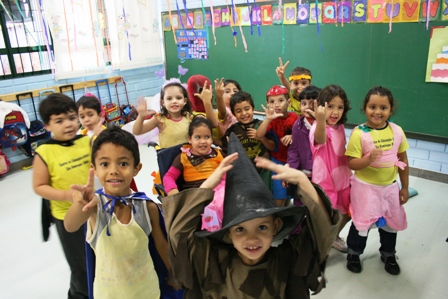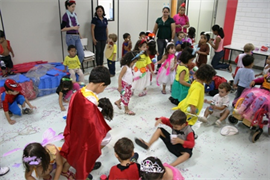 Giovana, de 5 anos, fantasiada de fadinha, disse que adora participar das festinhas e se divertir com os coleguinhas de turma. Brincaram ainda, batmans, homem-aranha, minnie, soldadinhos, fadinhas, odaliscas, havaianas, príncipes, backyardigans, piratas, patolinos e aladins. As crianças deram um show de criatividade na hora da produção carnavalesca.