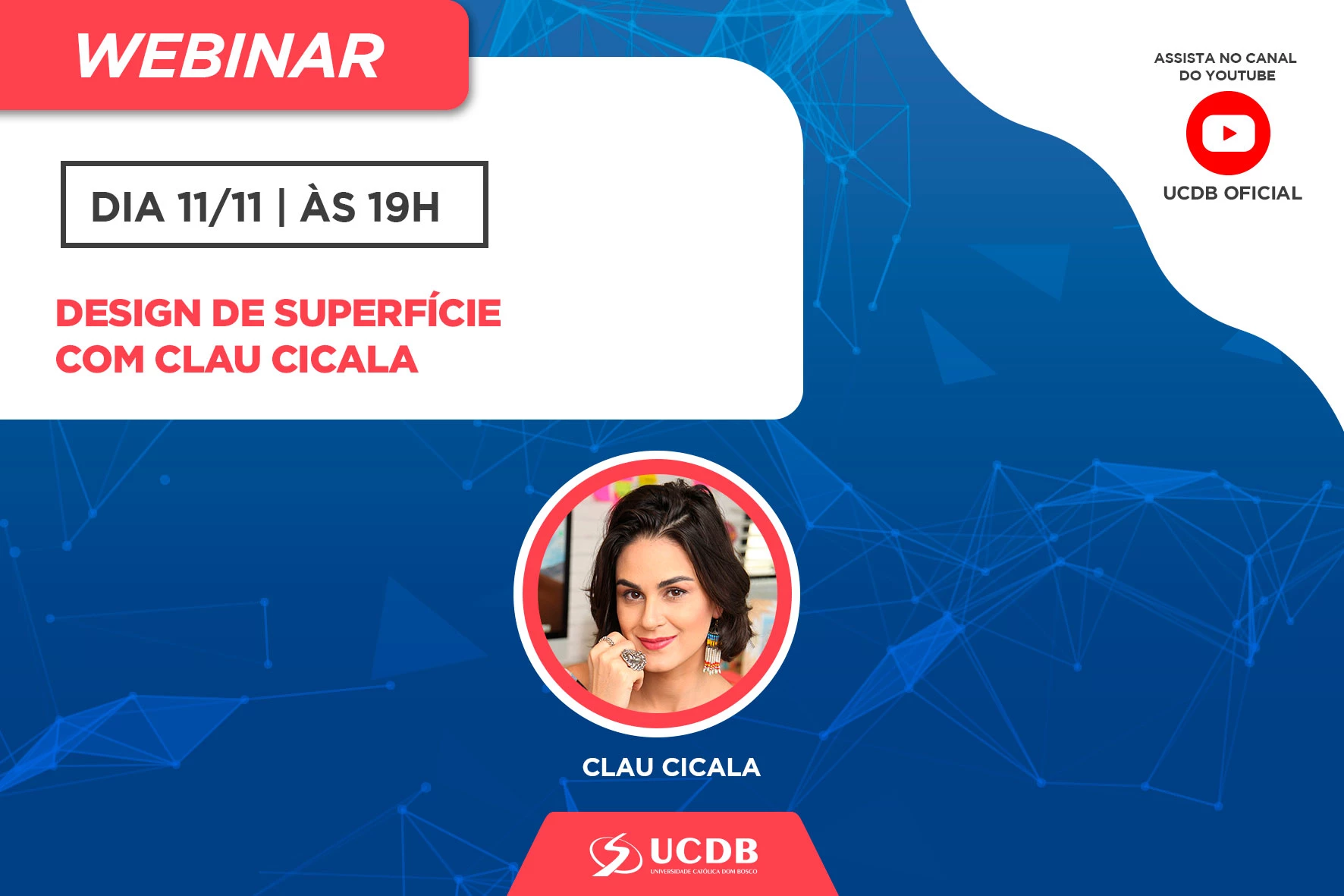 A Universidade Católica Dom Bosco (UCDB), por meio do curso de Design, promove na quarta-feira (11), às 19h, a webinar ‘Design de superfície com Clau Cicala’, destinada para acadêmicos e público em geral. O evento terá transmissão ao vivo pelo Youtube Oficial da UCDB.