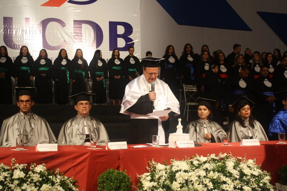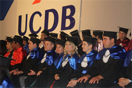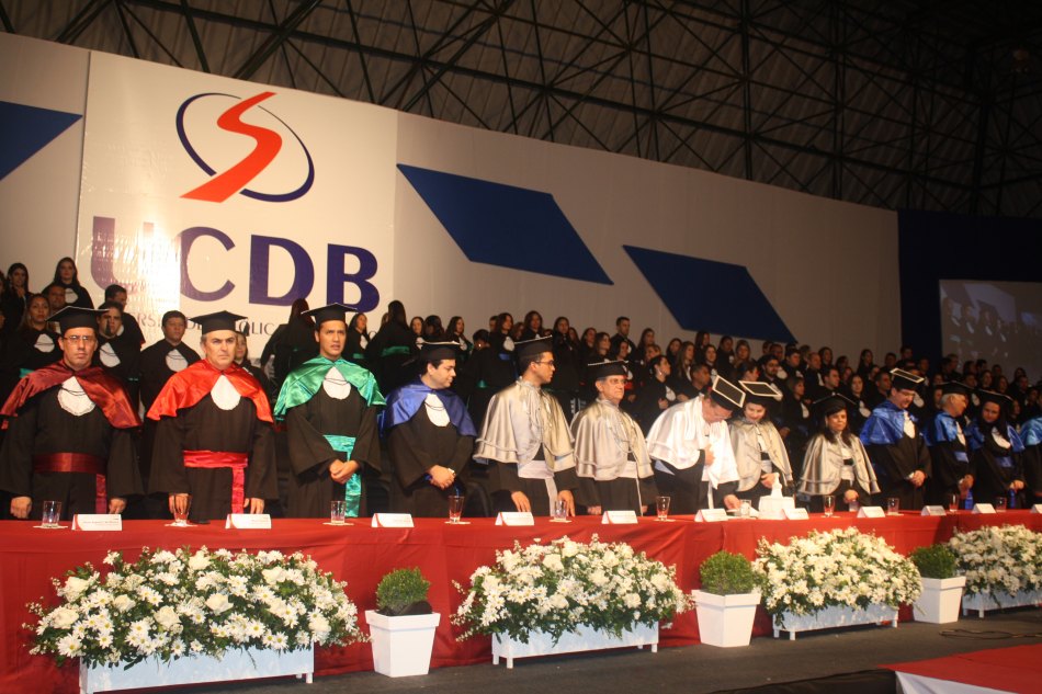 Na última sexta-feira, 173 acadêmicos de diversos cursos da Universidade Católica Dom Bosco (UCDB) participaram da cerimônia oficial de colação de grau, presidida pelo Reitor da UCDB, Pe. José Marinoni. Também participaram do evento o Pró-Reitor Administrativo, Ir. Altair Monteiro, a Pró-Reitora de Ensino e Desenvolvimento, professora Conceição Butera, o Pró-Reitor de Pesquisa e Pós-Graduação, professor Hemerson Pistori, a Pró-Reitora de Extensão e Assuntos Comunitários, professora Luciane Pinho e o Pró-Reitor de Pastoral, Ir. Gillianno Mazzeto.