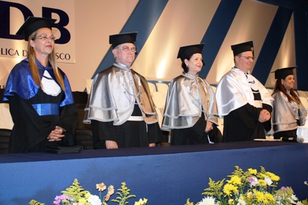 Hoje (16), a partir das 19h30, acontece na Universidade Católica Dom Bosco (UCDB) a última cerimônia de colação de grau dos acadêmicos formados em 2011. Realizadas desde terça-feira (13) no Complexo Didático-esportivo da UCDB, as cerimônias contam com a presença do Reitor da Católica, Pe. José Marinoni, e dos Pró-Reitores Ir. Altair Monteiro da Silva, Conceição Aparecida Butera e Luciane Pinho de Almeida, além dos coordenadores de cursos e, na plateia, professores, família e amigos.