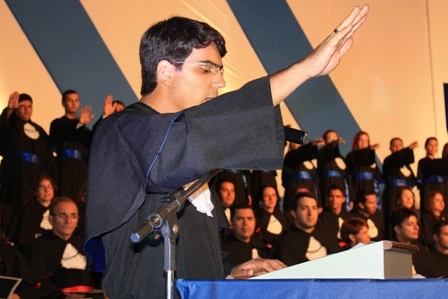 Ontem, colaram grau os acadêmicos de Direito, Filosofia e Pedagogia. O momento solene, o mais importante da vida acadêmica, foi marcado por festa, emoção e ineditismo, e contou com a presença do Reitor, Pe. José Marinoni, e dos Pró-Reitores Ir. Altair Monteiro da Silva, Conceição Aparecida Butera e Luciane Pinho de Almeida.