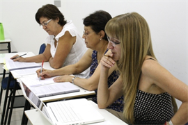 A palestrante contou um pouco sobre a trajetória de sua carreira e relatou sobre o processo de colaboração entre Universidades e Escolas, a formação de professores, analisando a diferença existente nos métodos de ensino de profissionais das instituições de ensino, e a busca crescente por conhecimento, por meio dos mestrados.