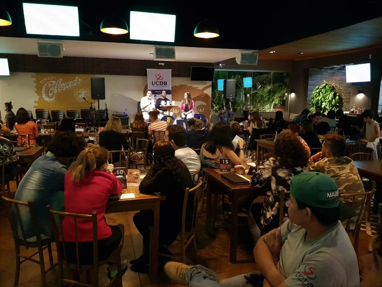 No Hook Beers Park, localizado nos altos da Avenida Afonso Pena, o debate, promovido pela Universidade Católica Dom Bosco (UCDB), ganhou um ar descontraído e tornou-se acessível a todos os públicos. Participaram da discussão a coordenadora da graduação em Biomedicina da Instituição, Luana Silva Soares, e o professor dos cursos de Biologia, Medicina Veterinária e Nutrição, Ricardo Martins dos Santos. Na data, atuou como mediador o Pró-Reitor de Desenvolvimento Institucional da Católica, Gillianno Mazzetto.