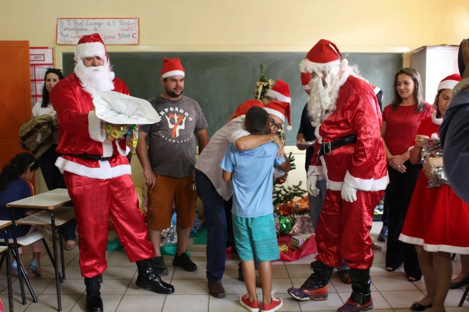 Em contagem regressiva para a chegada do Natal, alunos da Escola Municipal Professor Licurgo de Oliveira Bastos receberam na manhã desta quinta-feira (7), com muita alegria, o Papai Noel. Além dos professores da escola, estavam presentes professores, colaboradores e alunos da Universidade Católica Dom Bosco (UCDB), que foram prestigiar e participar da entrega de presentes para as crianças.