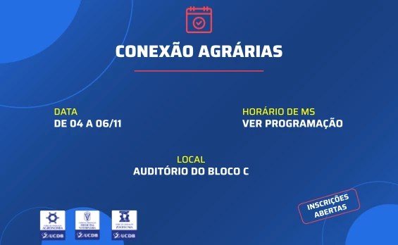 A Universidade Católica Dom Bosco (UCDB) promoverá, de 4 a 6 de novembro de 2024, o evento ‘Conexão Agrárias’, voltado para acadêmicos dos cursos de Agronomia, Medicina Veterinária e Zootecnia. Com palestras e atividades práticas, o evento busca desenvolver habilidades socioemocionais nos participantes, preparando-os para as demandas do mercado de trabalho.