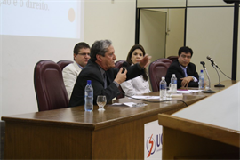 Já no período noturno houve palestra nos Blocos A e C onde foram discutidos os temas Rede Nacional de Advogados e Advogadas Populares - RENAP: Experiências, desafios e perspectivas e Resolução de conflitos. Fizeram parte do evento os membros da Coordenação Regional de RENAP/MS, o Dr. Nilton Cesar Antunes da Costa, o desembargador Dr. Romero Osme Dias Lopes e o Professor Me. Jacir Alfonso Zanatta. “Tem que haver uma mediação entre o judicial e a comunicação, eu defendo isso, pois acho que a comunicação como ensino pode contribuir para o curso de Direito”, relatou Zanatta.