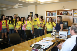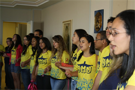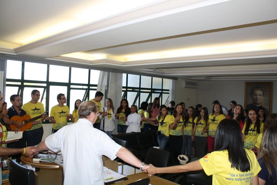 Antes do embarque foi feita uma visita à Reitoria, onde o Reitor Pe. José Marinoni se despediu dos acadêmicos e falou da importância dessa viagem e a responsabilidade que cada um deve ter. “Estou muito feliz por vocês, espero que revitalizem a vida cristã e tenham consciência da importância dessa viagem e no que ela influenciará suas vidas. A minha vontade era de participar com vocês, mas não será possível, então desejo a todos uma boa viagem”, relatou.