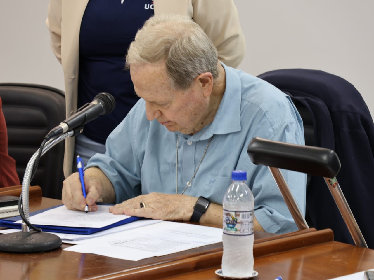 Também estavam presentes na reunião os pró-reitores, Pe. Rafael Gustavo Santos Souza Lopes (Pastoral e Assuntos Comunitários), Taner Douglas Alves Bitencourt (Administração) e Cristiano Marcelo Espínola Carvalho (Pesquisa e Pós-graduação), além dos demais conselheiros.