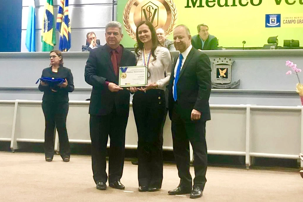 Em alusão ao Dia do Médico Veterinário, comemorado em 9 de setembro, os vereadores condecoraram os profissionais de destaque de Campo Grande com a medalha criada no âmbito do legislativo municipal por meio da resolução n° 1.279/18. “Me senti muito lisonjeada. É muito gratificante e estimulante ter o trabalho reconhecido. Mais do que isso, mostra que estou no caminho certo, deixando o exercício dessa linda profissão cada vez mais prazeroso”, comentou Daniele.