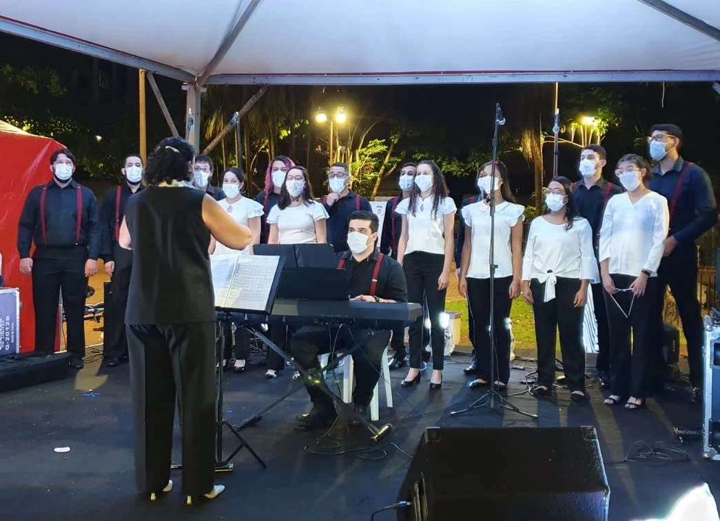 A noite de quarta-feira teve um brilho a mais para quem passou pelo centro de Campo Grande. Como parte da programação do Reviva Natal, da prefeitura da Capital, o Coral UCDB foi convidado a se apresentar na Praça Ary Coelho com o repertório especial de fim de ano.