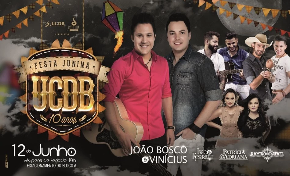 A décima edição da Festa Junina UCDB acontece no próximo dia 12 de junho, domingo, véspera de feriado. Órgãos de imprensa que farão a cobertura do evento devem se credenciar de segunda-feira (6) a quarta-feira (8), pelo e-mail noticias@ucdb.br. As informações necessárias para o credenciamento são: nome do veículo de comunicação, nomes dos profissionais, documento de identidade e telefone de contato.