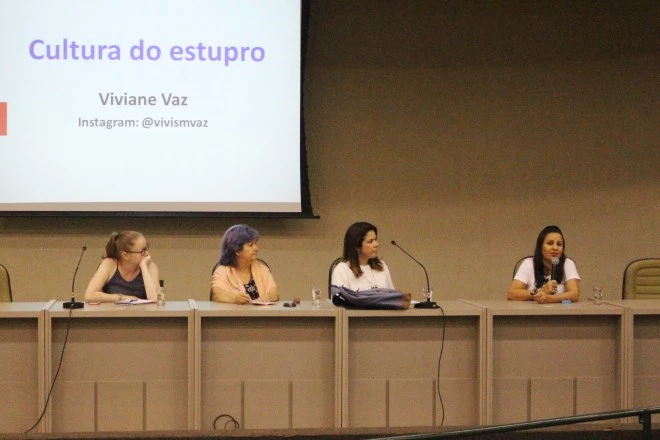 Durante a palestra foi falado bastante a respeito da cultura do estupro — termo utilizado para abordar as maneiras com que a sociedade culpa as vítimas de assédio sexual e normaliza o comportamento sexual violento dos homens. Entre o depoimento das especialistas, Viviane pontuou como as pessoas percebem essa cultura na sociedade e que é possível mudar com pequenas atitudes.