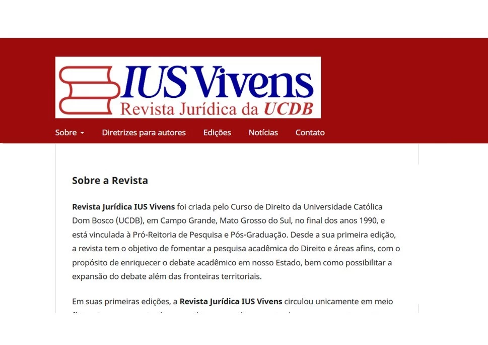 O curso de Direito da Universidade Católica Dom Bosco (UCDB) retoma neste ano a produção da revista jurídica IUS Vivens, reunindo artigos científicos de acadêmicos e disseminando conhecimento de alta qualidade. A periodicidade da revista será semestral e gratuita, organizada pelos editores-chefes Ricardo Souza Pereira e Paulo Adaias Carvalho Afonso, juntamente com os editores adjuntos e conselho editorial.