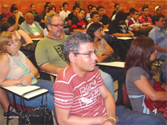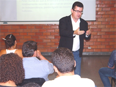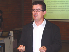 Na sala Multimídia II do Bloco A, os estudantes acompanharam a palestra sobre o Pan-americanismo. Durante a conversa, Dr. Neimar Machado indicou o berço do ideal Pan-americano e as principais correntes ideológicas que influenciam o movimento.
