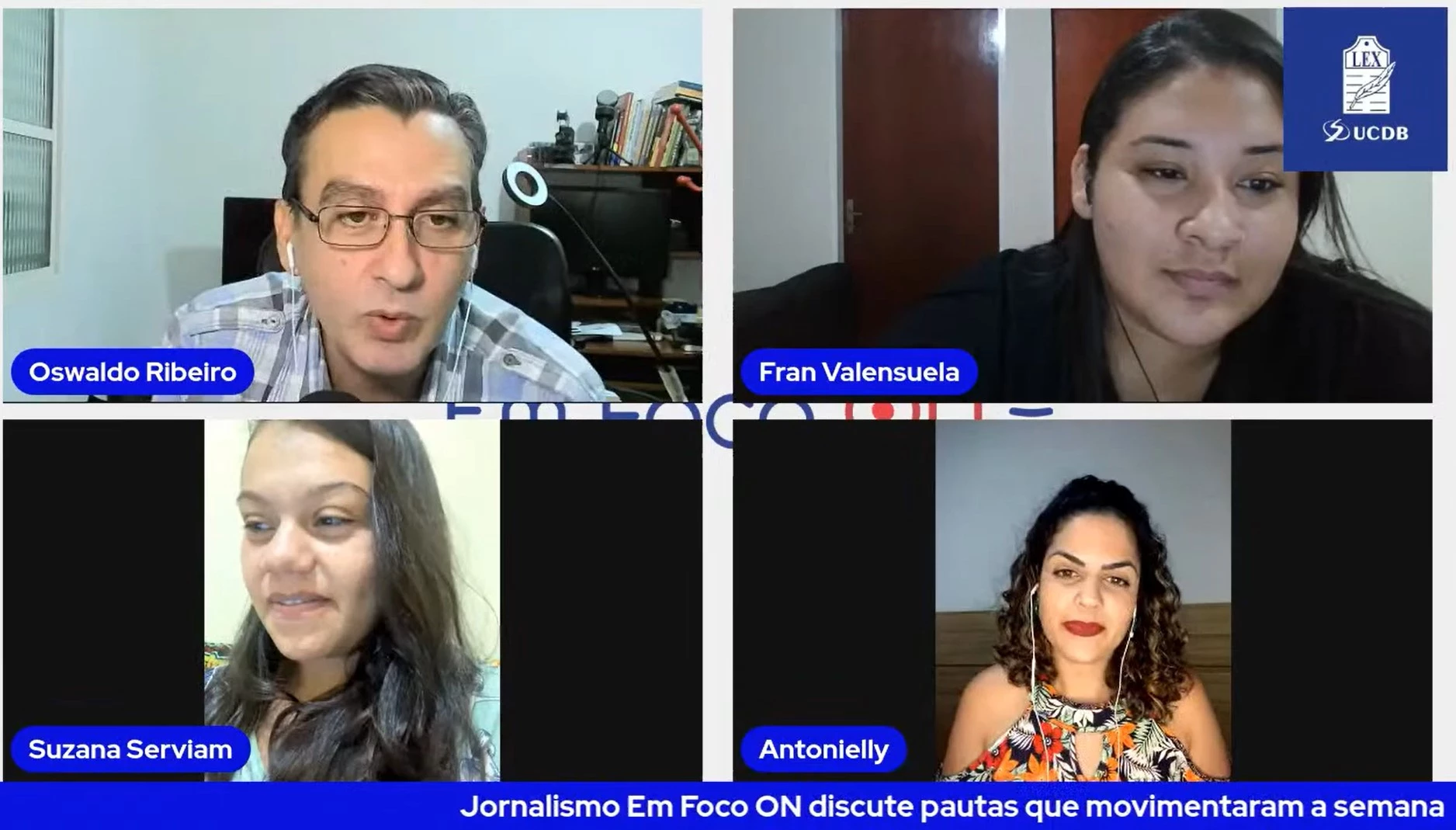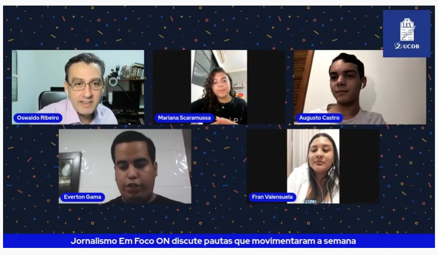O curso de Jornalismo da Universidade Católica Dom Bosco (UCDB) acaba de lançar o novo programa ‘Jornalismo em Foco ON’, com a participação de acadêmicos e convidados, em uma transmissão ao vivo pela página do Facebook e pelo canal do Youtube do curso. A exibição ocorre toda sexta-feira, às 20 horas.