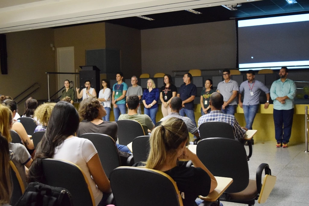 No total 14 professores apresentaram-se para os alunos e explicaram como funciona cada disciplina, além disso, falaram também a respeito dos projetos de extensão, da Fazenda-Escola e do Hospital Veterinário.