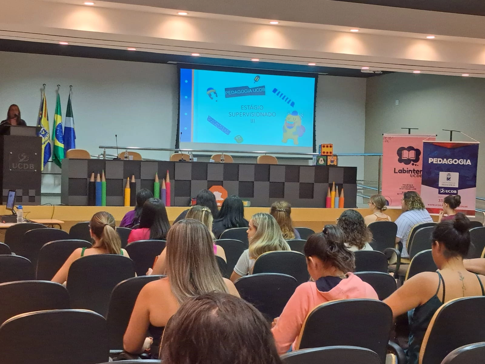 A Universidade Católica Dom Bosco (UCDB) realizou, na quarta-feira (23), no auditório do bloco M, o Seminário de Estágio Supervisionado do Curso de Pedagogia, que contou com diversas atividades e com a participação de uma egressa do curso, que compartilhou sobre a profissão.
