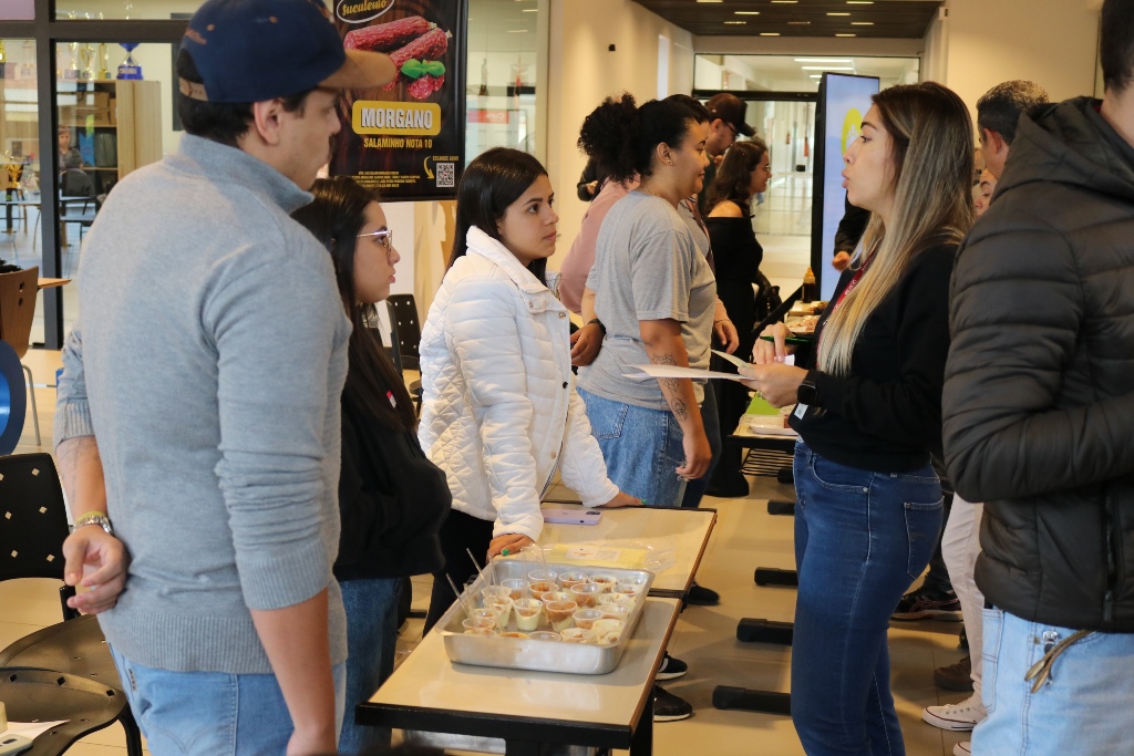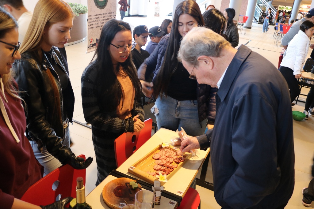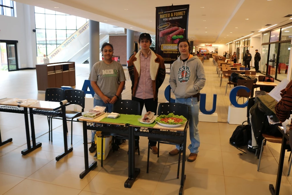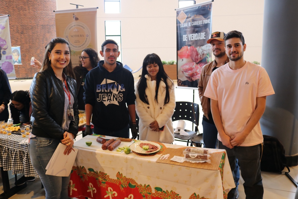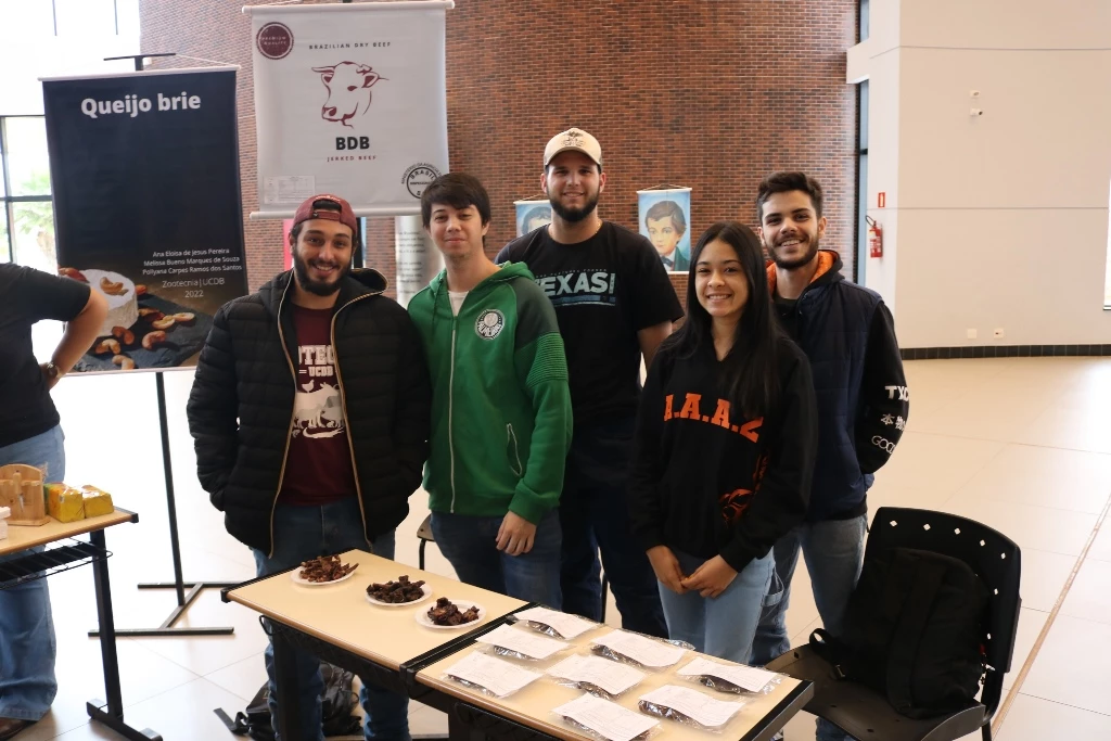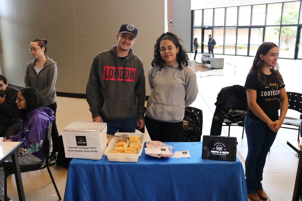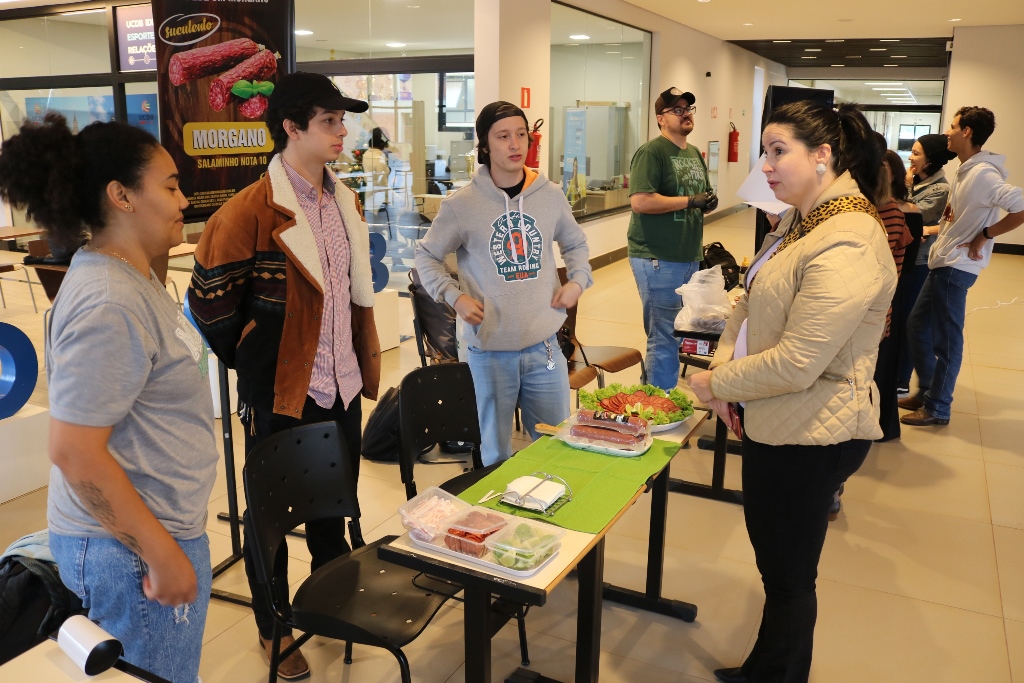Acadêmicos dos 6º semestres dos cursos de Medicina Veterinária e Zootecnia da Universidade Católica Dom Bosco promoveram na terça-feira (1º), no térreo do Pátio UCDB, a 3ª edição da Mostra de Produtos (processados) e Degustação. A ação faz parte do processo de avaliação dos alunos dentro da disciplina ‘Tecnologia de produtos de origem animal’, ministrada pela professora Milena Wolff Ferreira, e integrada com a disciplina ‘Certificação e Rastreabilidade’, ministrada pelas professoras Daniele Bier e Aline Rosa.