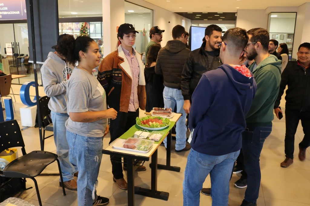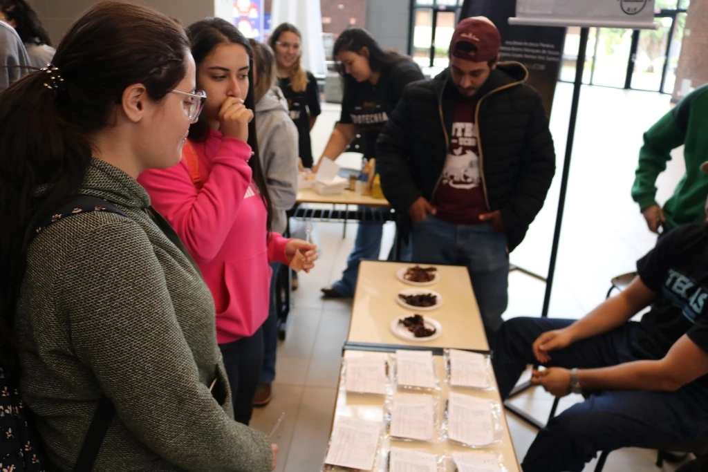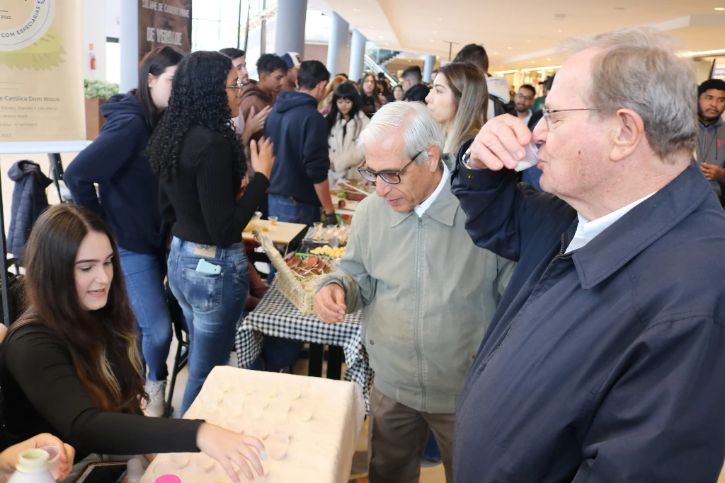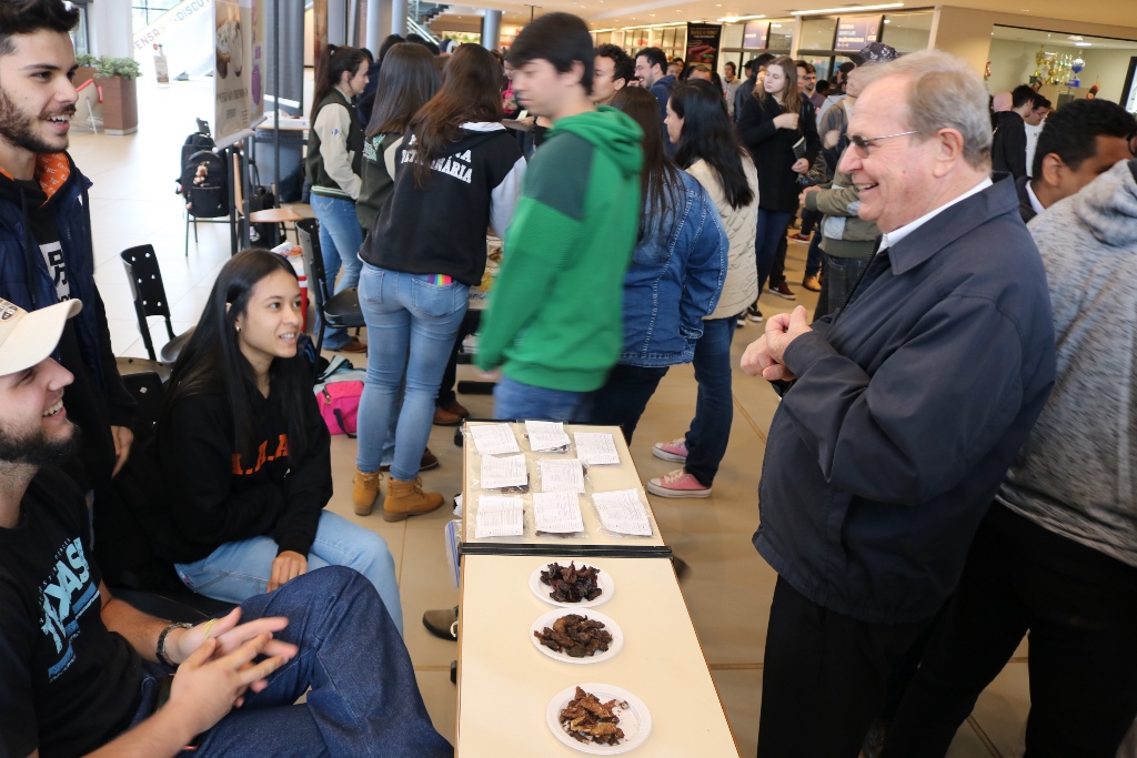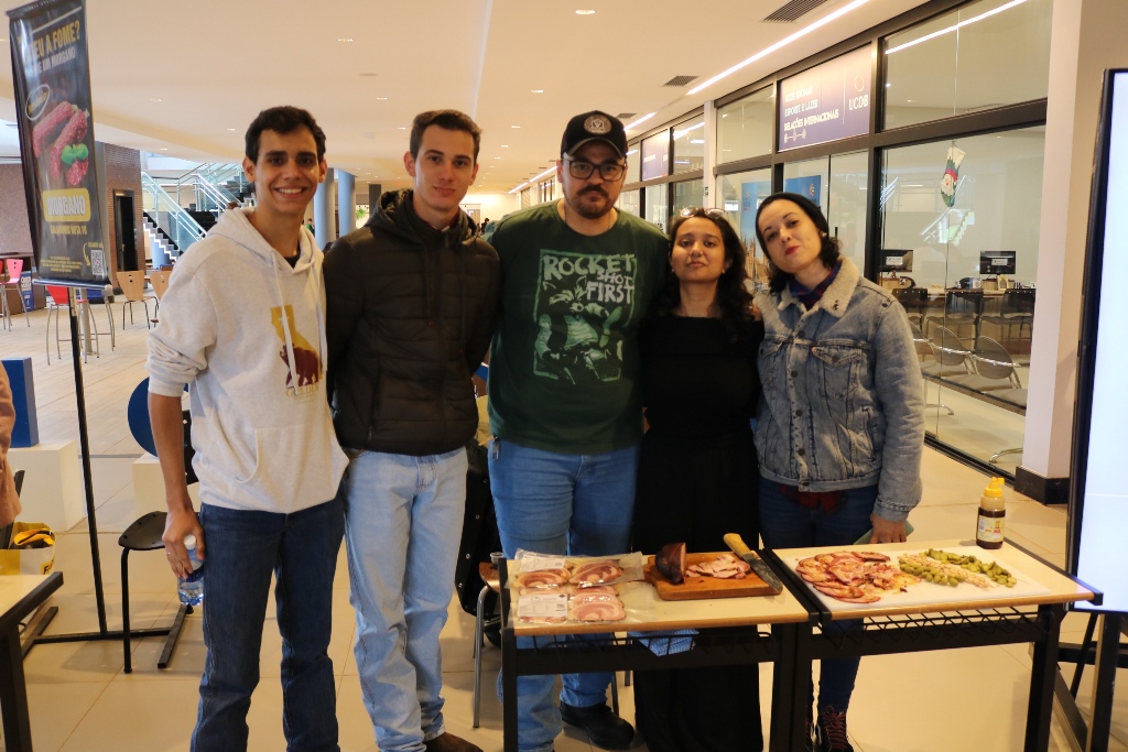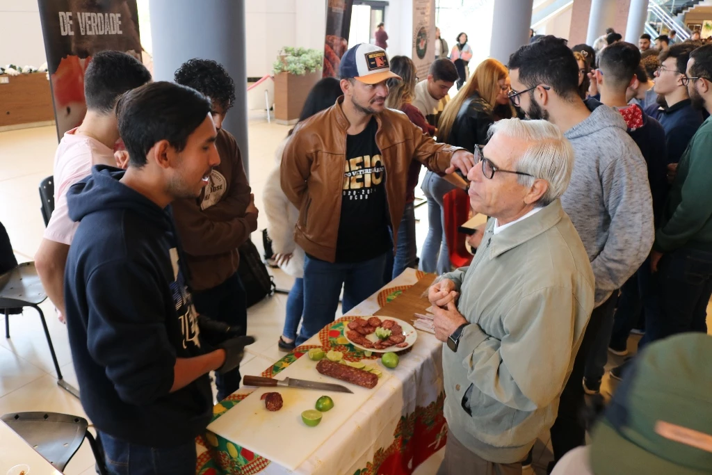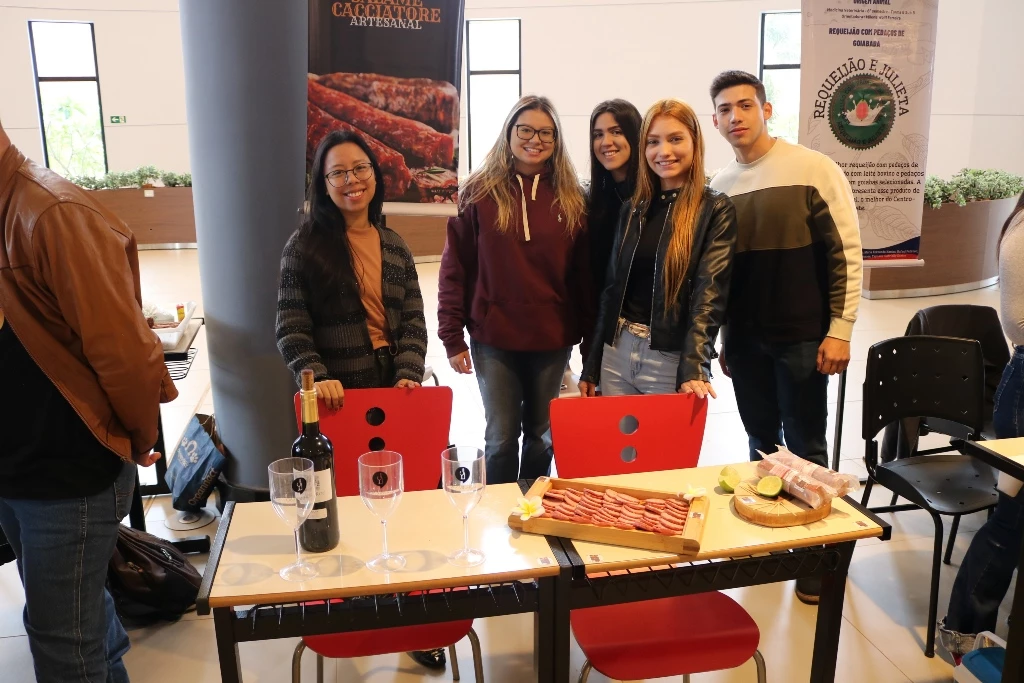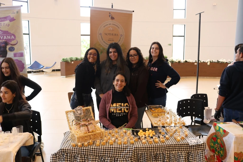 Acadêmicos dos 6º semestres dos cursos de Medicina Veterinária e Zootecnia da Universidade Católica Dom Bosco promoveram na terça-feira (1º), no térreo do Pátio UCDB, a 3ª edição da Mostra de Produtos (processados) e Degustação. A ação faz parte do processo de avaliação dos alunos dentro da disciplina ‘Tecnologia de produtos de origem animal’, ministrada pela professora Milena Wolff Ferreira, e integrada com a disciplina ‘Certificação e Rastreabilidade’, ministrada pelas professoras Daniele Bier e Aline Rosa.