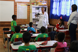 º semestre de Medicina Veterinária, trabalhar com o público infantil é contribuir para a formação de adultos conscientes. “As crianças dessa faixa etária prestam mais atenção e sempre cobram dos pais quando aprendem algo novo, ainda mais se compreendem a gravidade da situação, como é o caso das epidemias que têm afetado Mato Grosso do Sul e o país como um todo”, comentaram as alunas.