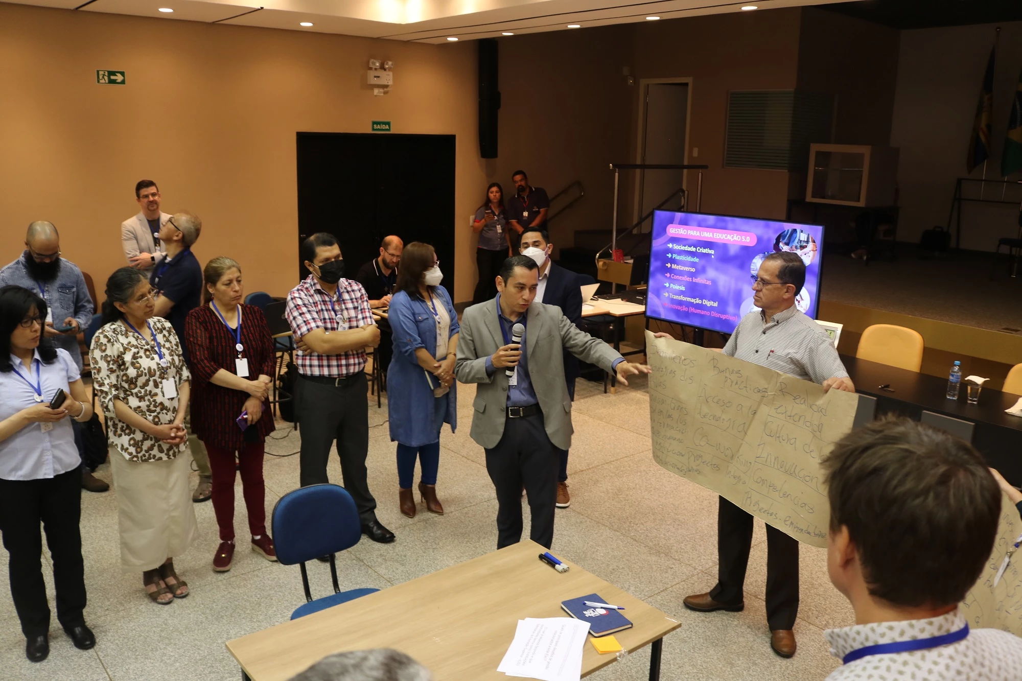 O facilitador propôs uma dinâmica envolvendo todos os participantes, que permitiu diversas discussões. A palestra teve como tema “Funções chaves na gestão da educação superior” e foram abordados alguns pontos da chamada Liderança 5.0, tais como mediação, planejamento, relacionamento humano, criatividade, foco em resultado, inteligência social e emocional e engajamento no propósito institucional.