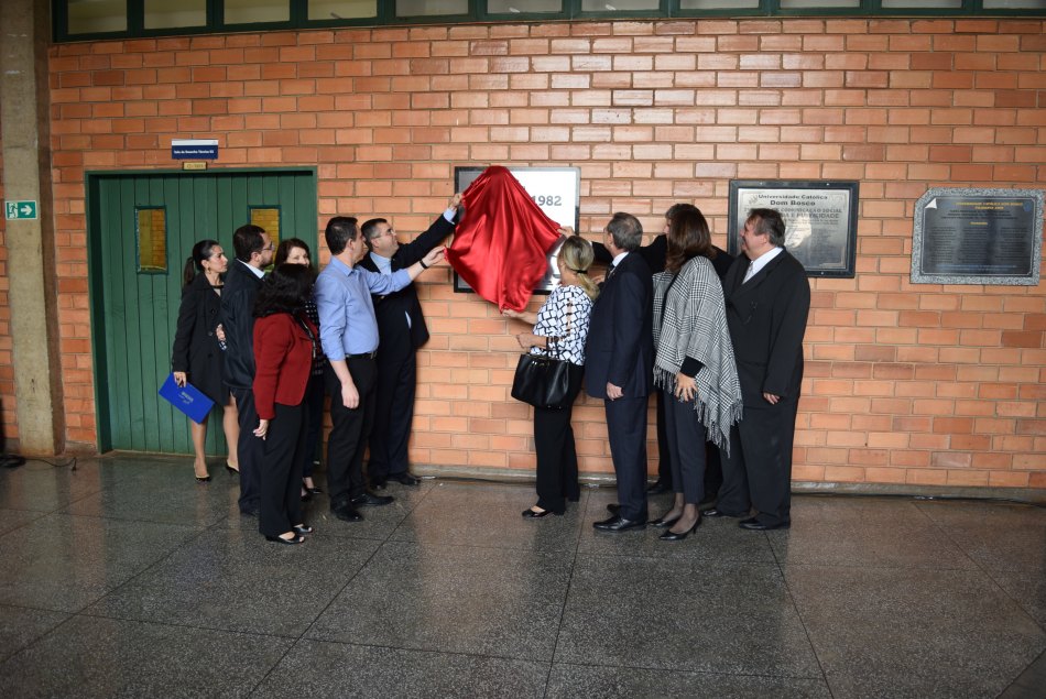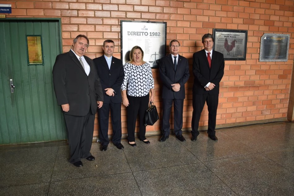 Os desembargadores do Tribunal de Justiça de Mato Grosso do Sul, Marcos José de Brito Rodrigues, Geraldo de Almeida Santiago e Jairo Roberto Quadro, ex-acadêmicos da antiga Faculdades Unidas Católicas de Mato Grosso (Fucmt), hoje Universidade Católica Dom Bosco (UCDB), participaram nesta terça-feira (31) do descerramento da placa da turma de Direito de 1982.