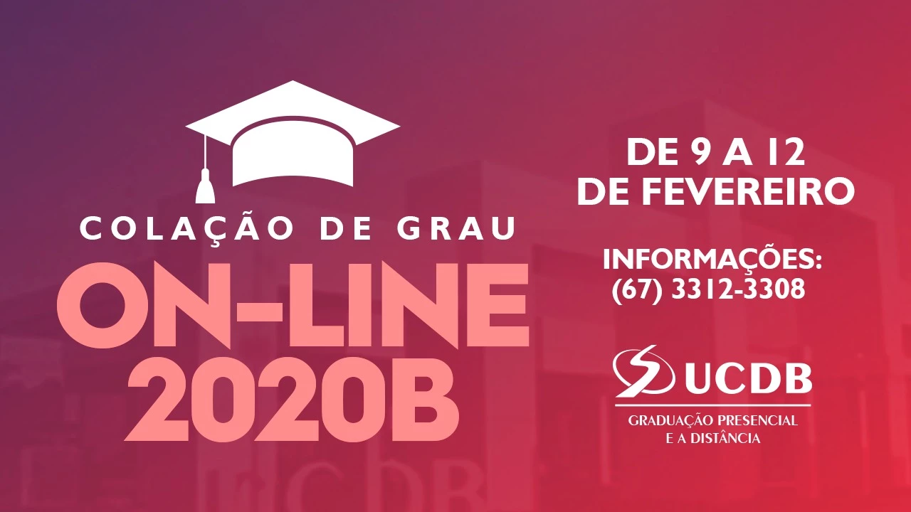 A Universidade Católica Dom Bosco (UCDB) abre oficialmente as cerimônias de Colação de Grau On-line nesta terça-feira, às 19h, pelo Youtube oficial da Instituição. Formandos de dez cursos (Arquitetura e Urbanismo, Design, Jornalismo, Publicidade e Propaganda, Biomedicina, Enfermagem, Farmácia, Fisioterapia, Nutrição e Psicologia) participam do evento, que terá a presença do Reitor da UCDB, Pe. José Marinoni e de integrantes do Conselho de Reitoria.