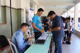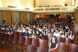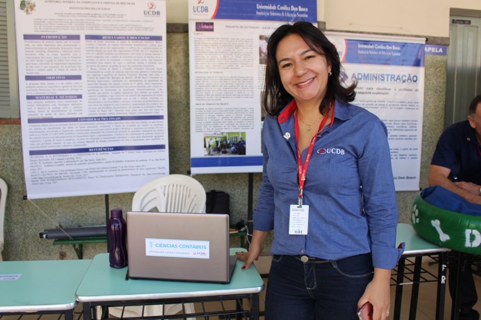 Professores e acadêmicos de dez cursos foram convidados pela coordenação da escola a apresentarem um pouco do campo de trabalho de cada profissão. Auxiliados pelo Setor de Relacionamento (SeR), os representantes da UCDB permanecem durante todo o dia de hoje na exposição, que acontece no pátio da escola. Os professores Elton Tamiozzo, coordenador de Publicidade e Propaganda, e Solange Furtado, docente de Direito, participaram de mesa-redonda para alunos do Ensino Médio, no anfiteatro do Auxiliadora.
