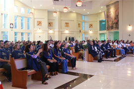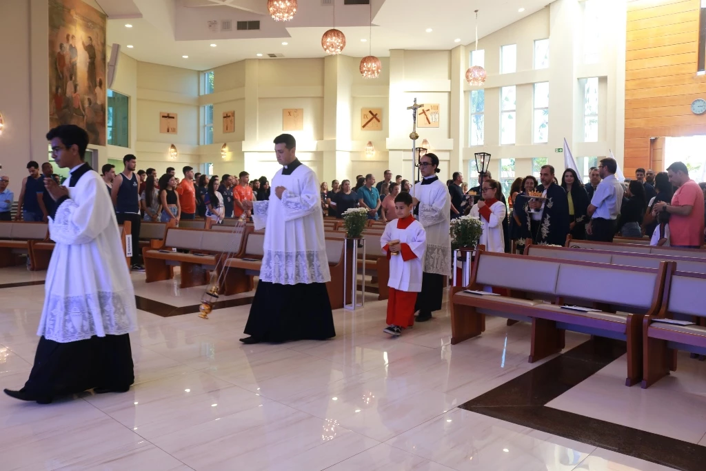 À tarde, missa presidida pelo Reitor da UCDB, Pe. José Marinoni, e concelebrada pelos padres Idenilson Lemes da Conceição, Juan Diego, Adriano Stevanelli e Wilson Cardoso, foi realizada na Paróquia Universitária São João Bosco. A solenidade teve a presença dos festeiros e festeiras nomeados em 2023, além de colaboradores docentes e administrativos, grupos de Cultura e Arte, atletas do Esporte e membros das Atléticas. Ao final, estudantes da Escola São Domingos Sávio fizeram a coroação de Nossa Senhora Auxiliadora.