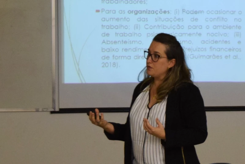 Com experiências de trabalho e estudo nas áreas de psicologia organizacional e do trabalho e saúde mental do trabalhador, Márcia pontuou para a comunidade acadêmica a importância de cuidar das emoções e comportamentos, além da forma de relacionar-se com o outro, seja em casa ou no ambiente laboral. Ela também expôs quais são os fatores de risco presentes no local de trabalho que podem comprometer a saúde mental de quem atua ali e também gerar danos de ordem organizacional para o empreendimento como absenteísmo e redução da qualidade dos serviços.