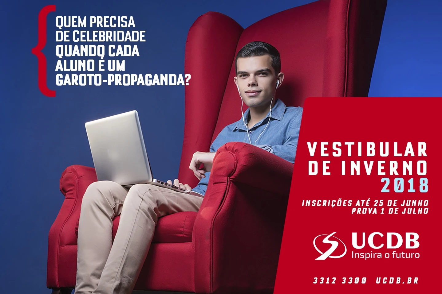 Até o dia 10 de junho, interessados em fazer o Vestibular de Inverno UCDB 2018 podem se inscrever gratuitamente no processo seletivo ao entregarem um quilo de alimento não-perecível na Área de Relacionamento (SeR) da Católica, localizada na entrada principal do campus Tamandaré. Após esse período, será cobrada a taxa do vestibular, que é de R$ 30.