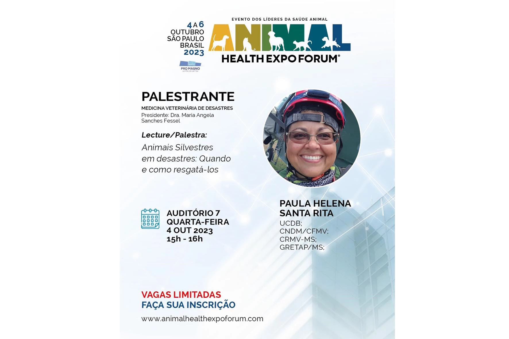 A professora da Universidade Católica Dom Bosco Paula Helena Santa Rita será uma das palestrantes do Animal Health Expo Forum, que acontece de 4 a 6 de outubro, em São Paulo. A docente abordará o tema “Animais silvestres em desastres: quando e como resgatá-los”, dentro da temática de Medicina Veterinária de Desastres.