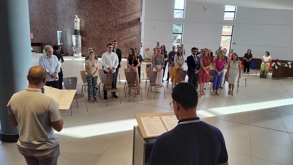 A segunda turma da pós-graduação em Salesianidade da Universidade Católica Dom Bosco (UCDB), composta por 27 docentes da Católica, recebeu nesta sexta-feira (26) o certificado de conclusão do curso, que teve a duração de nove meses. A cerimônia foi realizada no Pátio UCDB, sendo presidida pelo Pró-Reitor de Pastoral e Assuntos Comunitários, Pe. Idenilson Lemes da Conceição, e contando com a presença do Reitor da UCDB, Pe. José Marinoni, o coordenador do curso, Brasdorico Merquiades dos Santos, e familiares dos concluintes!