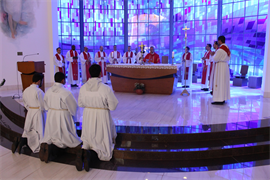 O Reitor da UCDB, Pe. Ricardo Carlos, concelebrante da Eucaristia, aproveitou para dar graças a Deus pela iniciativa de aproximar o Instituto Teológico João Paulo II da Universidade Católica Dom Bosco. “É um motivo de muita alegria”. O coordenador do curso presencial de Teologia, Pe. José Adriano Estevaneli também agradeceu a acolhida e considera um tempo de graça.