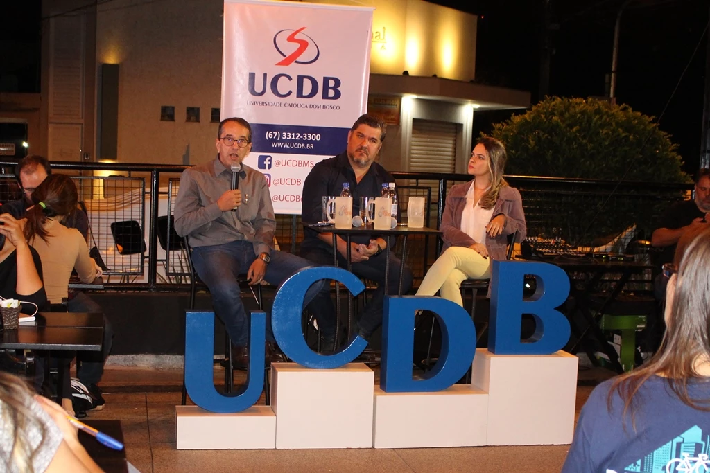 Na noite dessa quinta-feira (16), o Salomé Bar, em Campo Grande, foi palco da 7ª edição do Dose de Ciência. Realizado pela Universidade Católica Dom Bosco (UCDB), o evento propôs uma discussão descontraída sobre o tema “Mobilidade urbana: por uma cidade mais minha”. Ao todo, dois professores da Instituição participaram do debate: Fernando Camilo de Carvalho Júnior, arquiteto especialista em planejamento urbano e políticas públicas de desenvolvimento; e Dra. Fabiana Maluf Rabacow, profissional de Educação Física com doutorado em medicina preventiva. Além deles, também esteve presente o professor de Arquitetura e Urbanismo da UCDB, Dr. Alessandro Campos, que atuou como mediador.