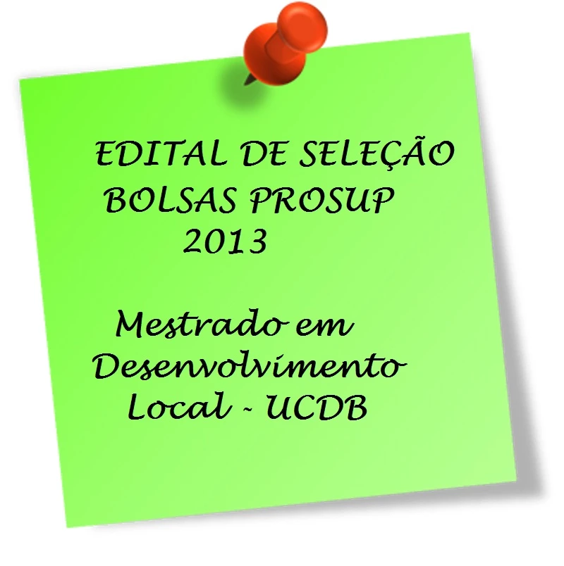 A coordenação do Programa em Pós Graduação Stricto Senso em Desenvolvimento Local da Universidade Católica Dom Bosco, divulga o edital para seleção de bolsista CAPES/PROSUP 2013.