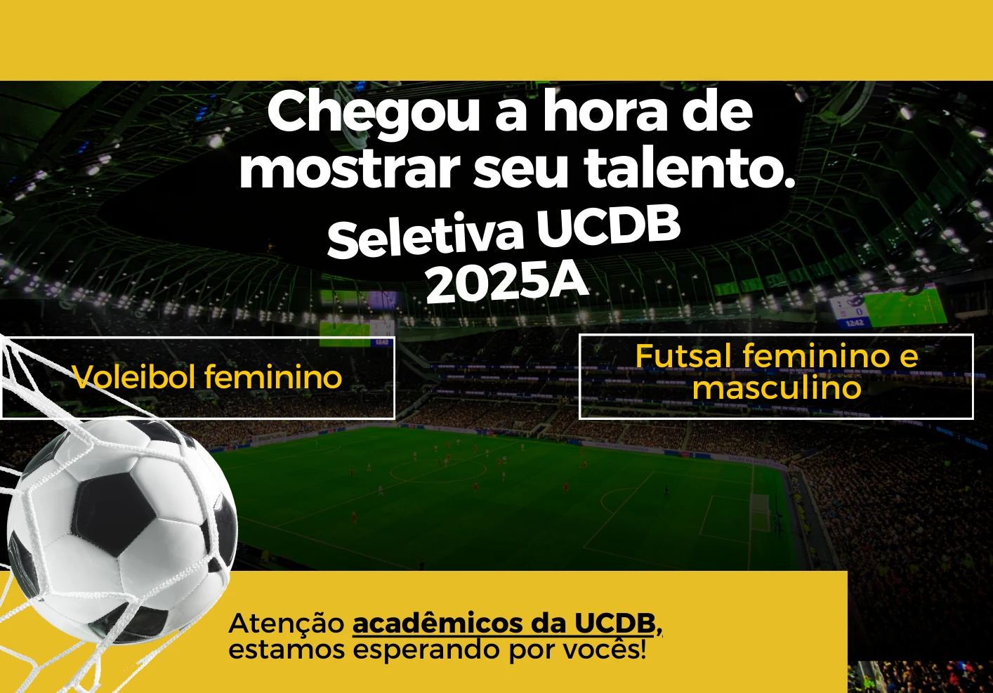 X – Participar da seletiva a ser realizada no dia 27/02/2025 das 19h30 às 22h30, nas Quadras Esportivas da UCDB, pelo Setor de Esporte e Lazer da Universidade Católica Dom Bosco, para as modalidades coletivas (futsal e voleibol).
