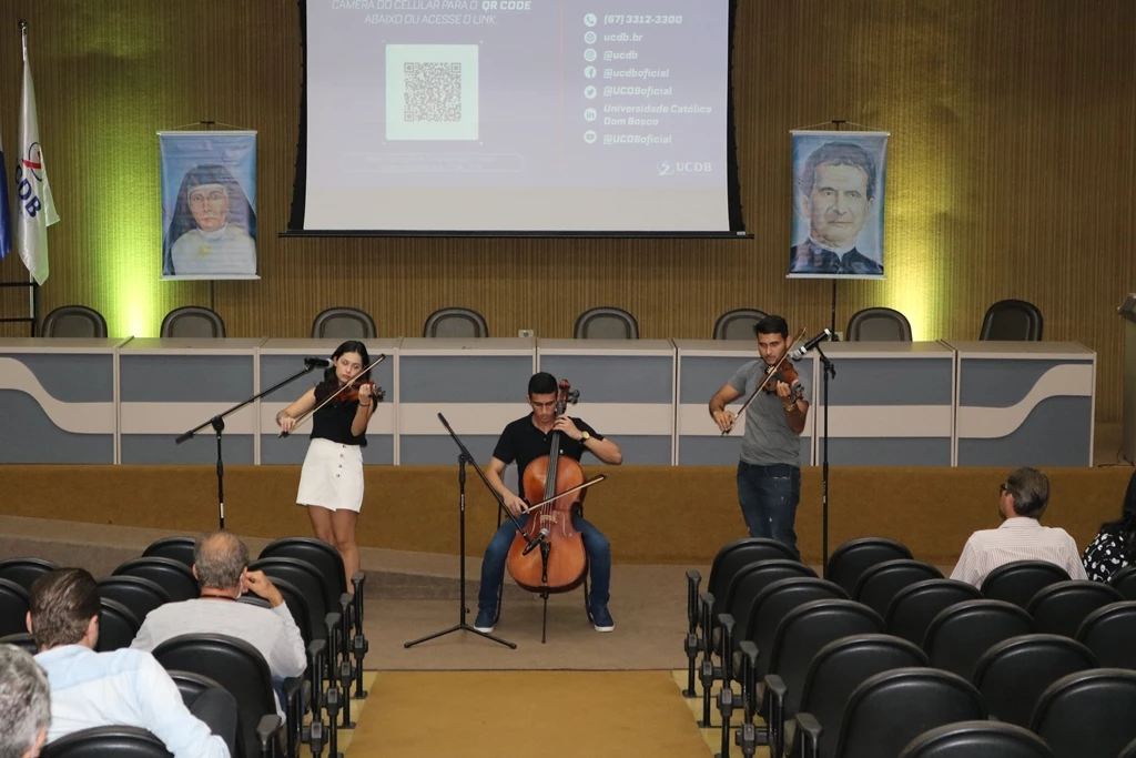 A abertura contou com a apresentação do Grupo de Cordas da área de Cultura e Arte da UCDB, ligado à Pró-Reitoria de Pastoral e Assuntos Comunitários, além de um momento de oração com a Pe. Idenilson e da equipe de música da Pastoral. “Temos de olhar para as potencialidades que acontecem ao nosso redor e que na correria do dia a dia passam despercebidas. Que Deus nos ajude a valorizar mais as qualidades do que os defeitos”, destacou.