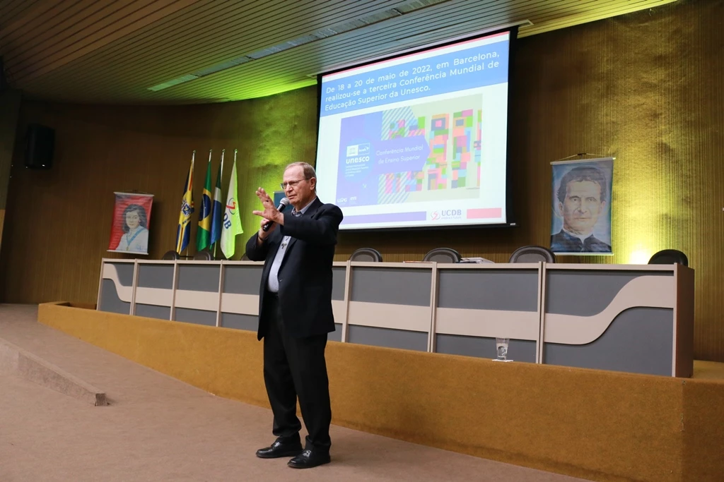 Já o Reitor da Católica trouxe a palestra “A educação superior e o futuro”, abordando a III Conferência Mundial de Educação Superior (CMES) da Organização das Nações Unidas para a Educação, a Ciência e a Cultura (Unesco) realizada em maio, em Barcelona (Espanha). O evento ocorre a cada 10 anos e visa definir os rumos da educação superior dos países membros da Unesco para o decênio seguinte. “Somente no ano passado é que os autores Ernandes Rodrigues do Nascimento e Maria Auxiliadora Soares Padilha conseguiram trazer o estudo para a realidade brasileira, tomando o que já existia fora do país para a ‘Escala brasileira de engajamento docente’, com cinco dimensões: cognitiva, emocional, institucional, pedagógica e social".