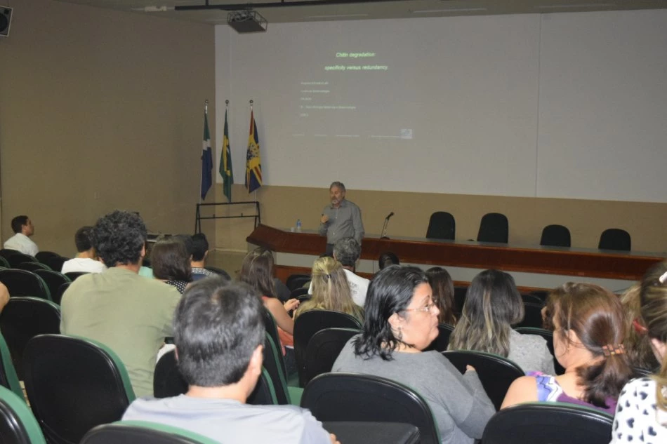 “Estar sempre atentos às pesquisas básicas, porque mesmo fazendo uma coisa absolutamente não aplicada, ela pode ter outra função importante”, sintetiza o pesquisador da Universidade Federal do Rio Grande do Sul (UFRGS), do Departamento de Biologia Molecular e Biotecnologia, professor Augusto Schrank, durante a palestra "Quitinases: redundância ou especificidade", promovida ontem (25), pelo programa de Mestrado em Biotecnologia da Universidade Católica Dom Bosco (UCDB).
