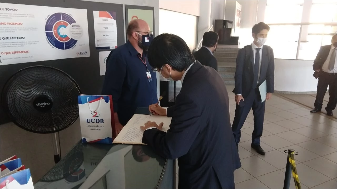 O embaixador do Japão no Brasil, Akira Yamada, acompanhado do Cônsul Geral do Japão em São Paulo, Hiroyuki Ide, do terceiro secretário da embaixada do Japão no Brasil, Yasunori Mori, conheceram nesta manhã (1º/9), o Museu das Culturas Dom Bosco (MCDB). O grupo foi recepcionado pelo coordenador do MCDB, Dirceu Mauricio van Lonkhuijzen, e pela professora Alinne Pereira de Castro.