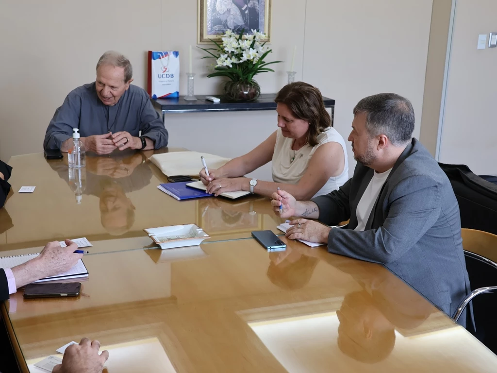 A embaixadora da República Tcheca, Pavla Havrlíková, acompanhada do cônsul honorário em Batayporã, Evandro Trachta e Silva, visitou na quarta-feira (30) a Universidade Católica Dom Bosco (UCDB). Durante a visita, a diplomata reuniu-se com o Reitor da Católica, Padre José Marinoni, os pró-reitores Taner Douglas Alves Bitencourt (Administração) e Cléber Fagundes Ramos, além do coordenador do Programa de Pós-Graduação em Biotecnologia, professor Dr. Octávio Luiz Franco.