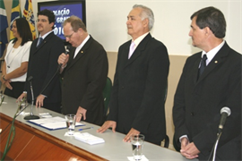 Compuseram a mesa solene o Reitor da UCDB, Pe. José Marironi, o diretor da UCDB Virtual, Dr. Jeferson Pistori, o coordenador dos cursos tecnológicos e de Administração da UCDB Virtual, Dr. Teodomiro Fernades, a coordenadora do curso de Ciências Contábeis da UCDB Virtual, Me. Eloir Trindade, e como convidado, o conselheiro-diretor de Licitações e Compras do Conselho Regional de Administração de Mato Grosso do Sul (CRA-MS), Jonas Luis de Melo.