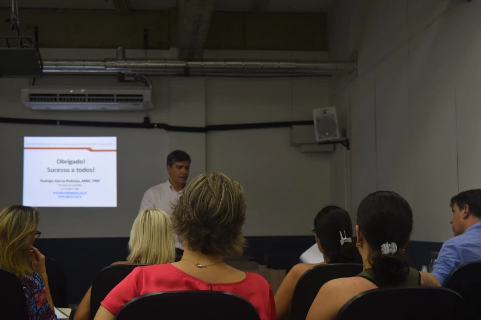 O assunto foi aborado pelo palestrante Rodrigo Garcia Pedrosa, presidente da Associação de Gerenciamento de Projetos de Mato Grosso do Sul (AGPMS), que explicou que o projeto é uma das partes mais importantes para que o empreendedor consiga atingir seu objetivo, e que para isso ele deve estar sempre atento ao mercado e se atualizar.