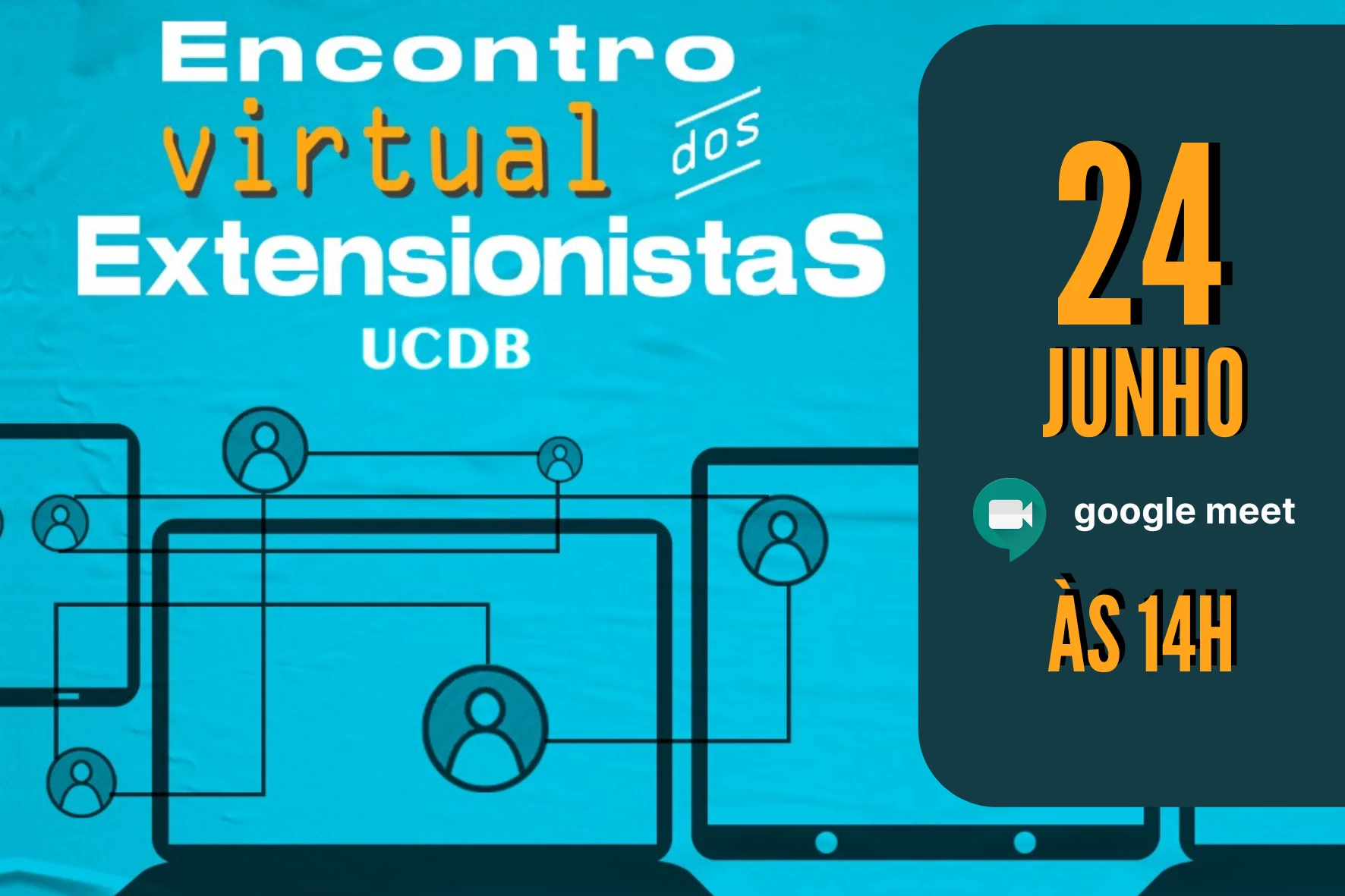 Nesta quarta-feira (24), às 14h, a Universidade Católica Dom Bosco (UCDB) promove a primeira edição do “Encontro Virtual de Extensionistas”, por meio do Google Meet (https://meet.google.com/gsa-jwzc-kds). Voltado para acadêmicos e docentes que integram os três laboratórios e 17 projetos desenvolvidos na Instituição, o evento, organizado pela Área de Programas e Projetos de Extensão da UCDB e pelo Comitê de Extensão, ganhou o formato on-line como maneira de respeitar o isolamento social para evitar o contágio da Covid-19. No encontro, será realizada a palestra “Desafios para a extensão em tempos de pandemia”.
