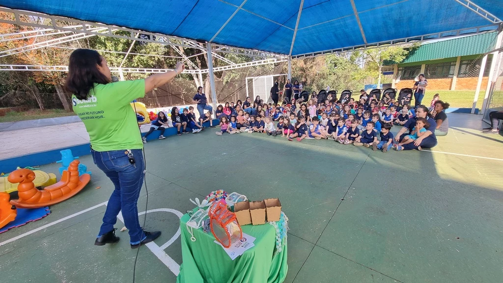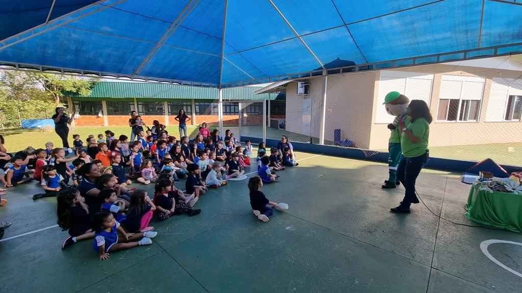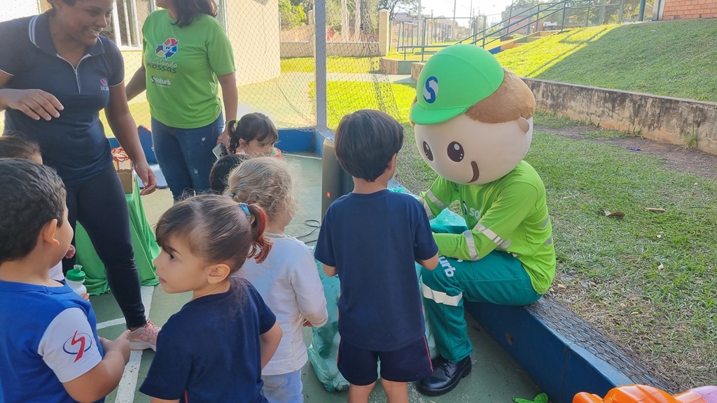 Alunos da Escola Salesiana São Domingos Sávio, da Universidade Católica Dom Bosco (UCDB), receberam a visita do Solurbinho, mascote da empresa Solurb Soluções Ambientais, concessionária que realiza a limpeza urbana e manejo de resíduos sólidos de Campo Grande, e tiveram uma palestra sobre coleta seletiva e a importância de reciclagem, na tarde de hoje (30).