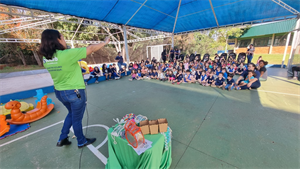 A ação foi realizada pela educadora ambiental e escritora Mara Calvis, que também é doutoranda em Desenvolvimento Local pela UCDB. “Para crianças da educação infantil, ensinamos basicamente o que pode ser reciclado: papel, metal, vidro, plástico e óleo de cozinha na garrafa pet. Tudo isso, depois de limpo, pode ser trazido para os pontos LEV [Locais de Entrega Voluntária], como existe na escola. Queremos que as crianças levem essa informação para os pais e se tornem multiplicadoras”, enfatizou Mara.
